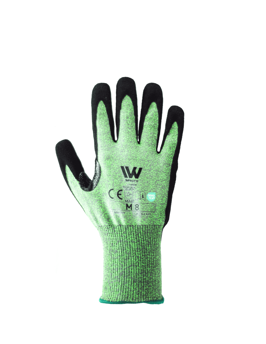 Découvrez les gants anticoupures J18NIS de la marque WEPRO. En plus d'être OEKO-TEX, ces gants avec une jauge 18, sont compatibles avec les écrans tactiles.