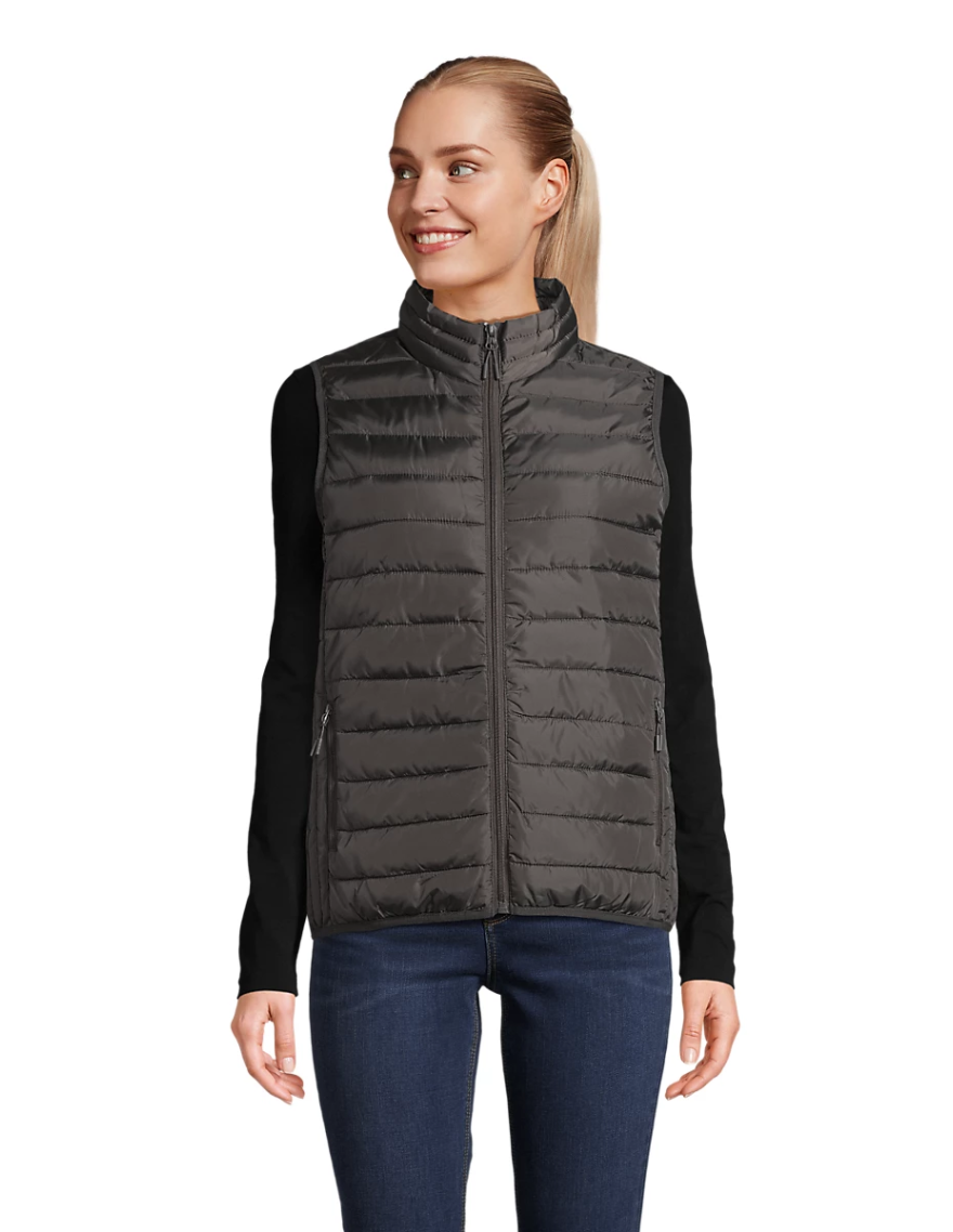 PersonnaliserPolyvalente et agréable à porter, la doudoune sans manches femme STREAM signée SOL’S est conçue en polyester 100 % recyclé. Elle se dote d'un col montant, ainsi que de deux poches zippées sur les côtés. Elle peut se porter seule à la mi-saison ou en superposition sous un manteau lorsque les températures baissent. Compacte, elle se range facilement dans son sac de transport inclus.