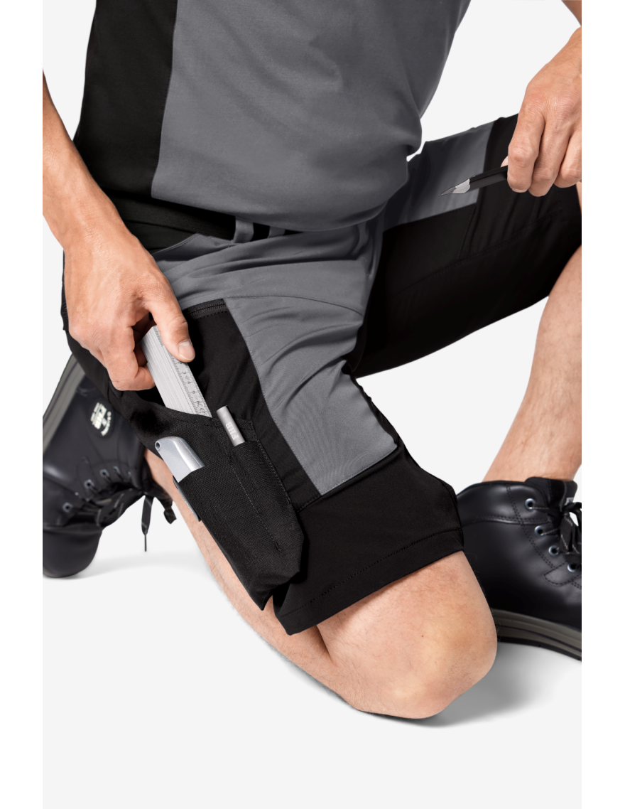 Ce bermuda est également très fonctionnel grâce à ses nombreuses poches telles que des poches pour téléphone portable avec zip YKK, mètre pliant, stylo, couteau ainsi qu'une poche à large volume.