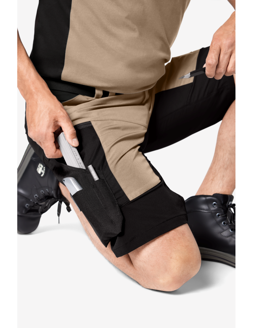 Ce bermuda est également très fonctionnel grâce à ses nombreuses poches telles que des poches pour téléphone portable avec zip YKK, mètre pliant, stylo, couteau ainsi qu'une poche à large volume.