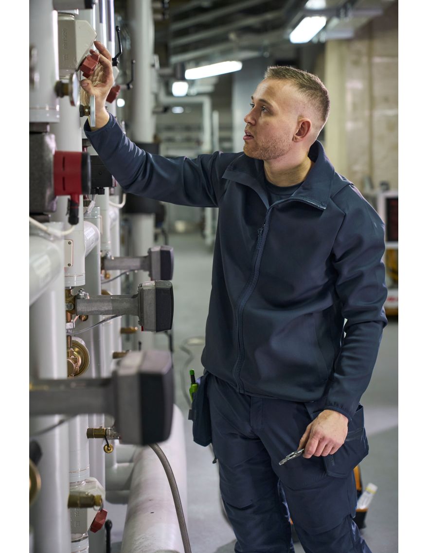 Avec sa coupe moderne, ce produit est agréable à porter tout au long de la journée. Doté d'un revêtement déperlant et antisalissure, ce pull possède un col montant, des poches latérales et intérieures, ainsi qu'une bande élastique aux poignets et au bas du vêtement pour rester confortable et soigné au travail.